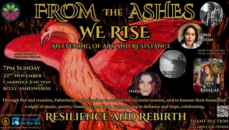 All proceeds from this event will be donated to The Amos Trust, supporting Palestinian communities, and Riverway to the Sea, advancing legal resistance and justice for Palestine.